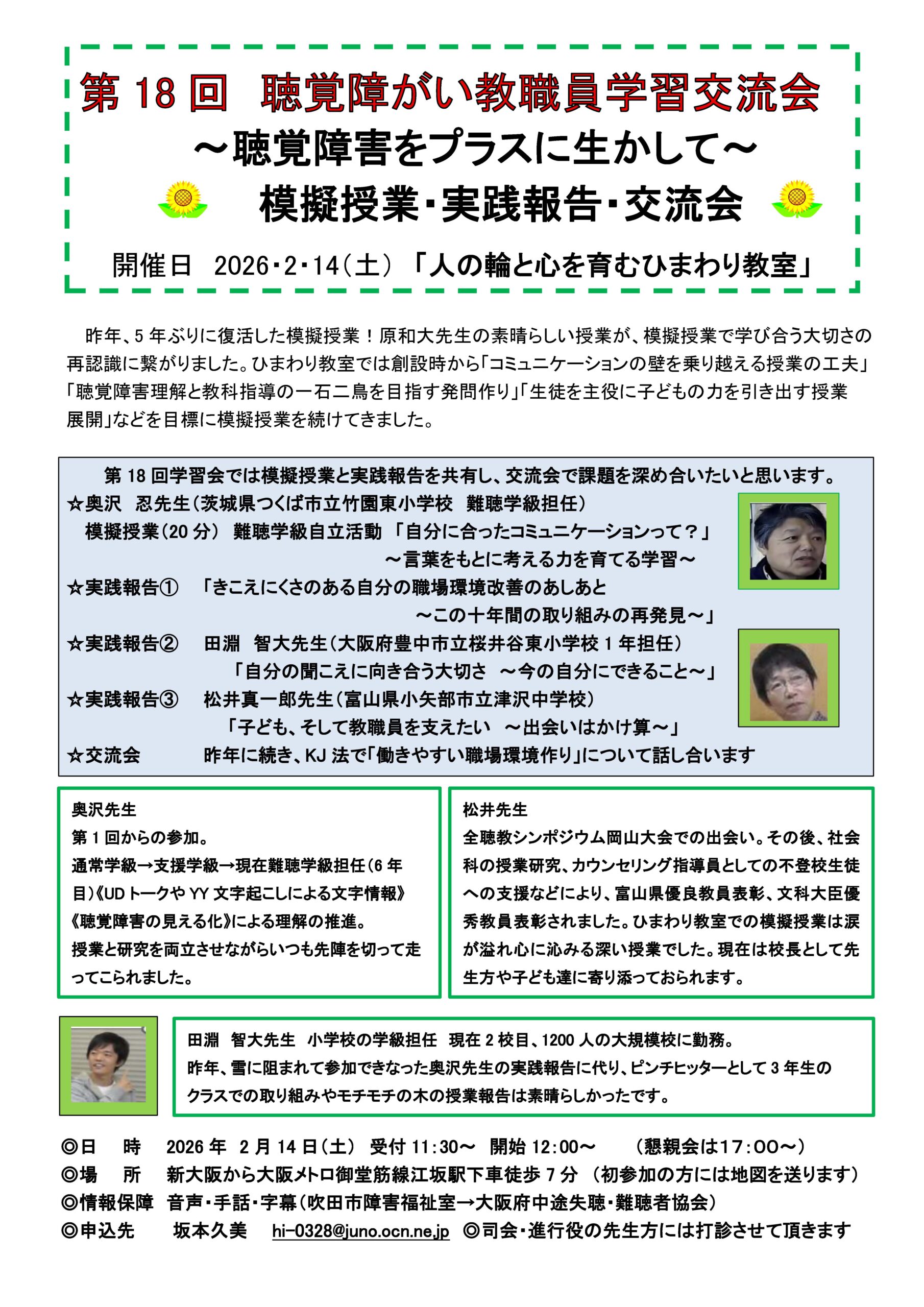 第18回聴覚障がい教職員学習交流会(人の輪と心を育むひまわり教室)チラシ